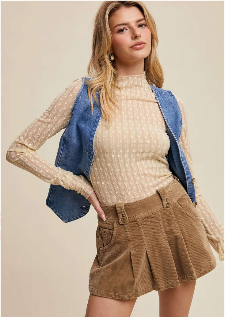 A delicate and sophisticated sheer top, perfect for layering and elevating any outfit with its elegant texture.